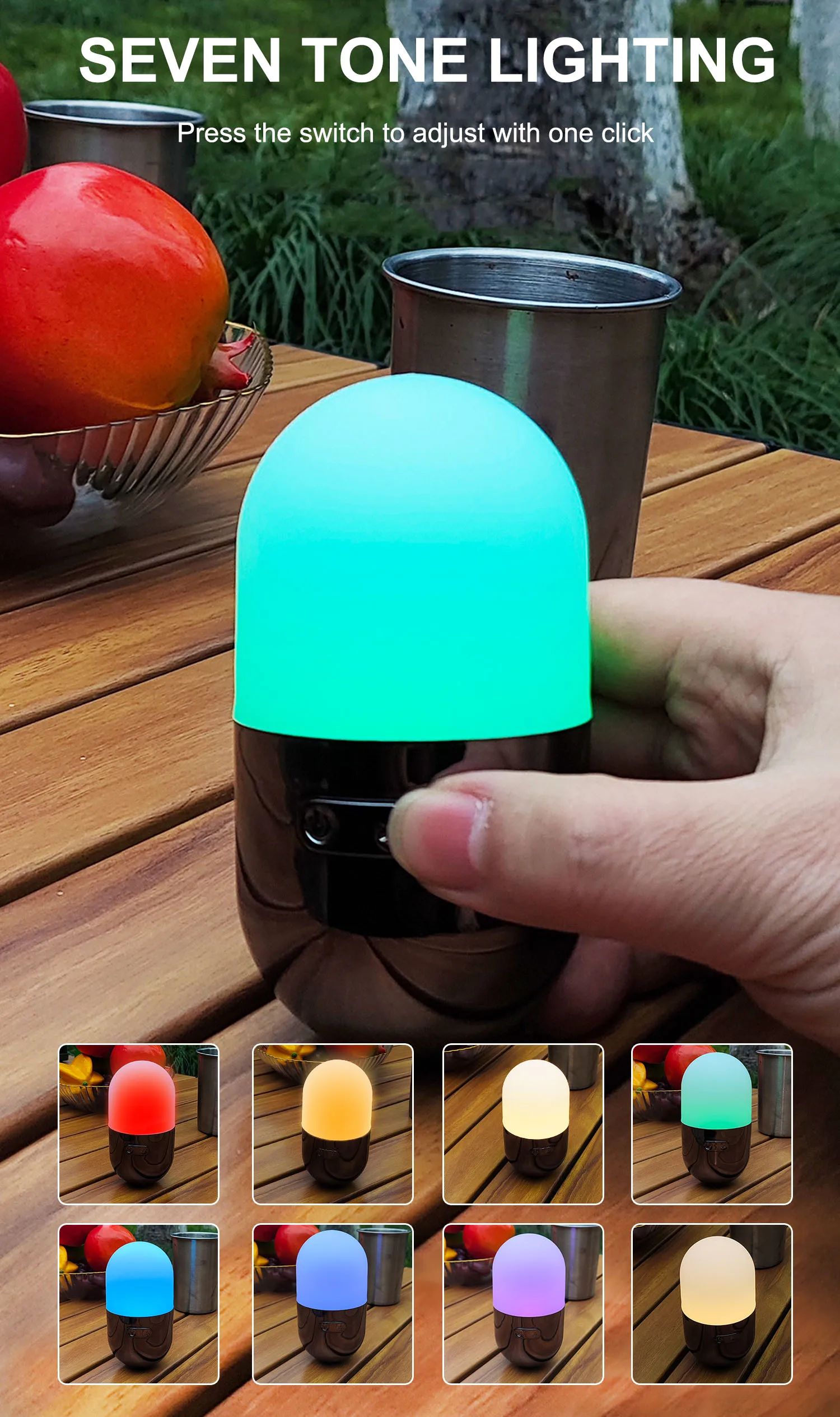 Цикл RGB-цветов высокой и низкой яркости (красный, оранжевый, желтый, зеленый, голубой, синий, фиолетовый) — нажмите и удерживайте для смены цвета |