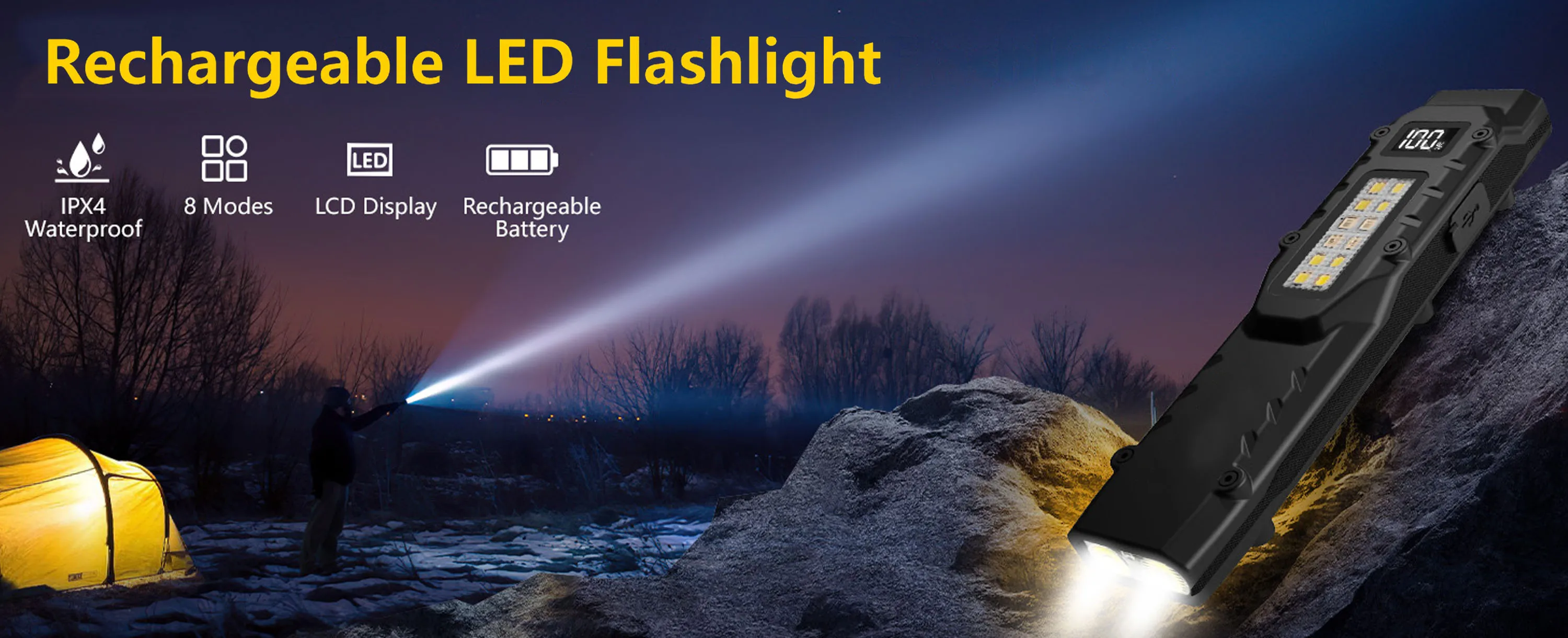 Сверхъяркий режим: 1100 лм (138 метров) Высокая яркость: 800 лм (120 метров)