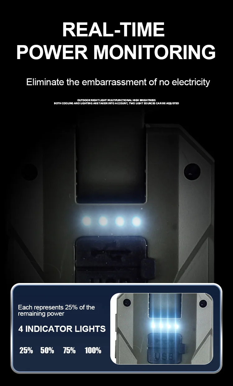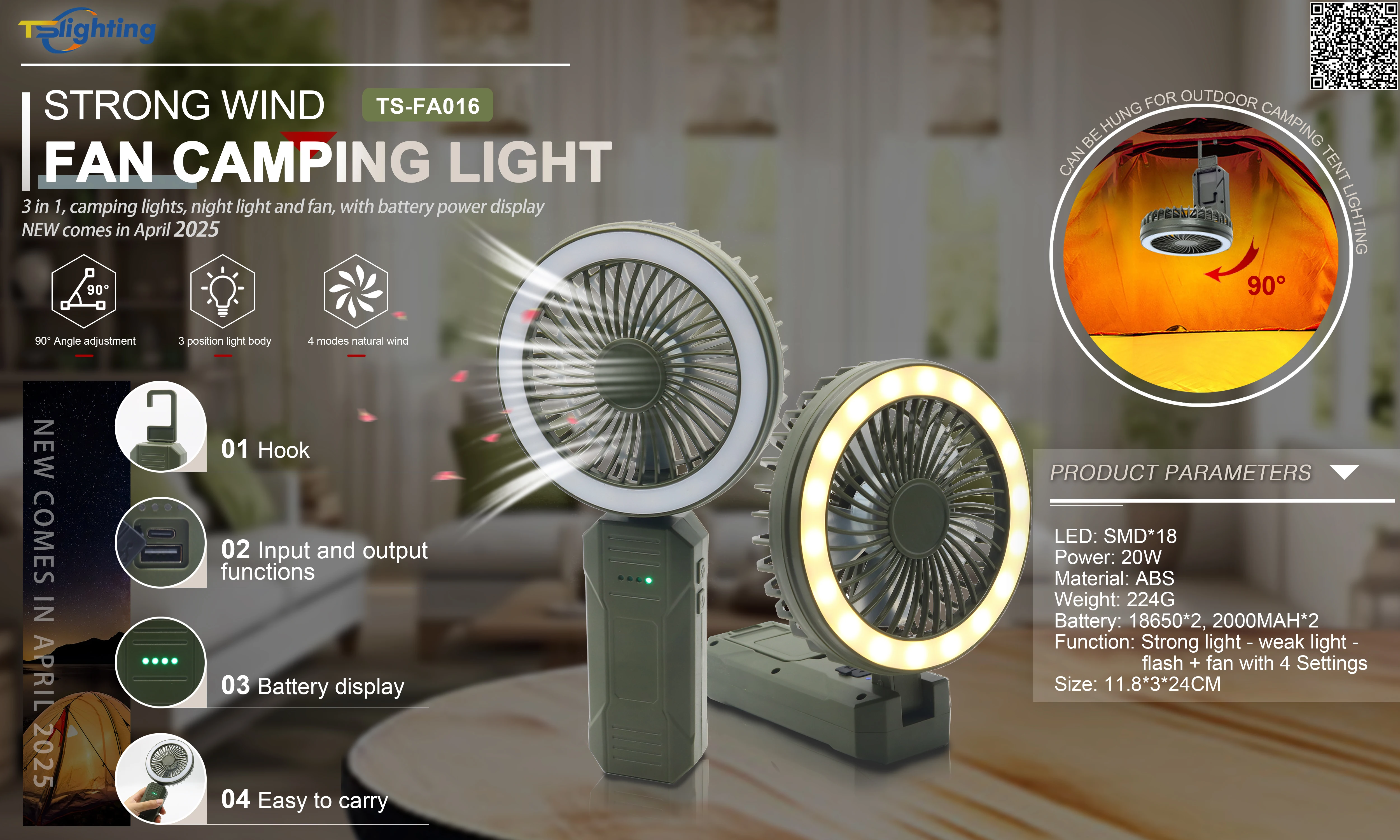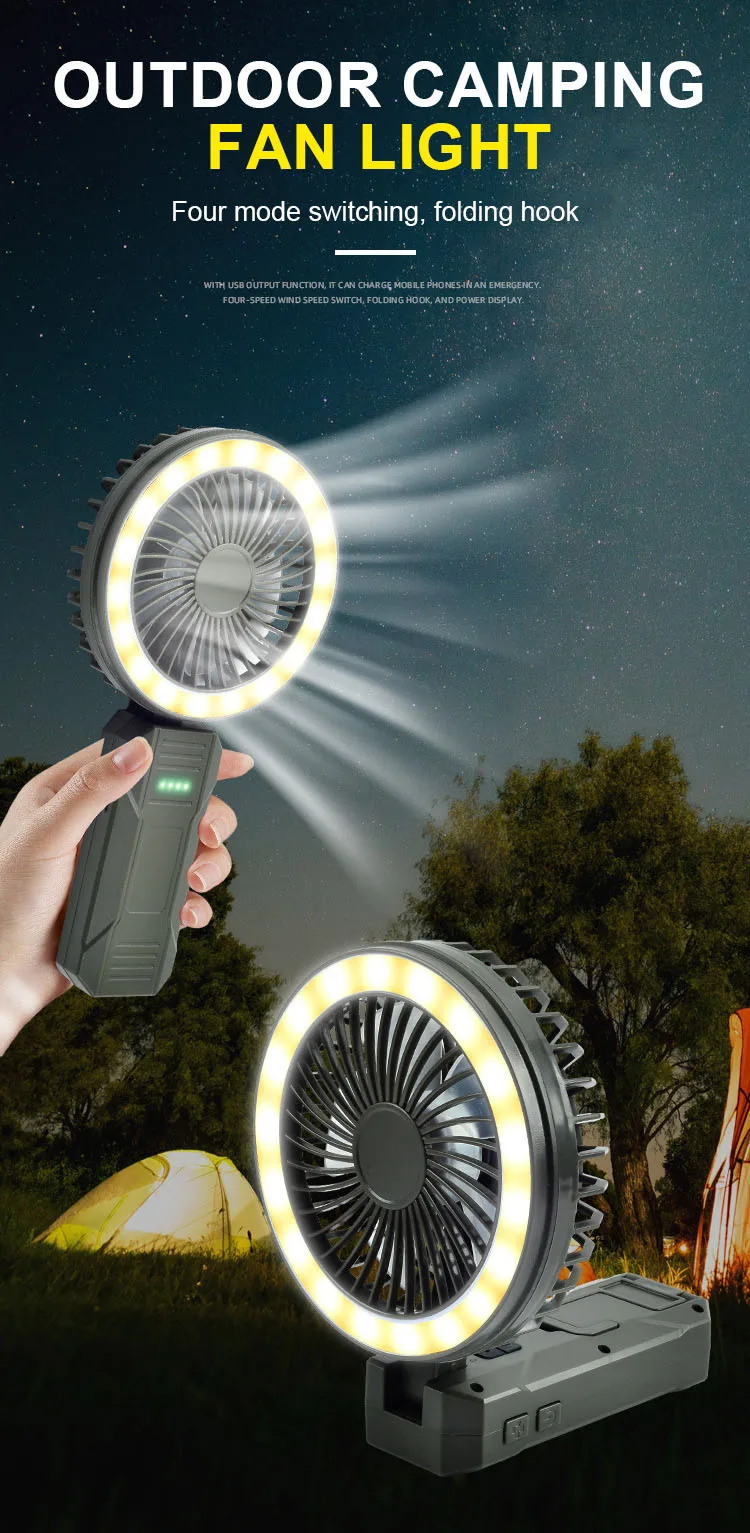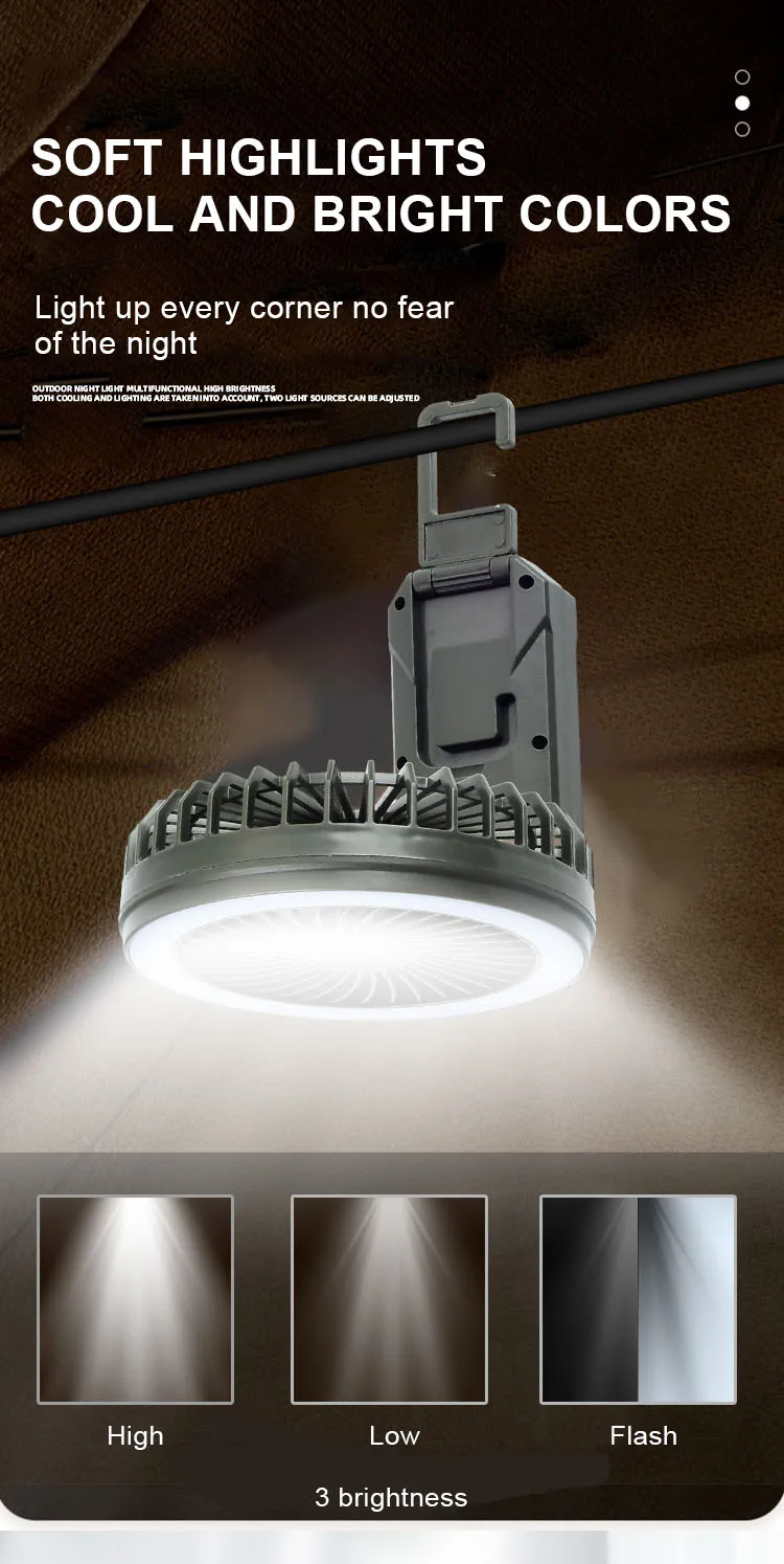 Яркий свет — слабый свет — мигание + вентилятор с 4 режимами работы |